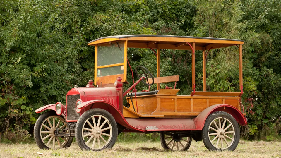 This vehicle has been assembled with an original Model T chassis and a contemporary Depot Hack body. This example is an older restoration.