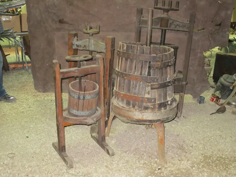 Lot includes 4 antique grape presses which appear very original and complete and in varying sizes.