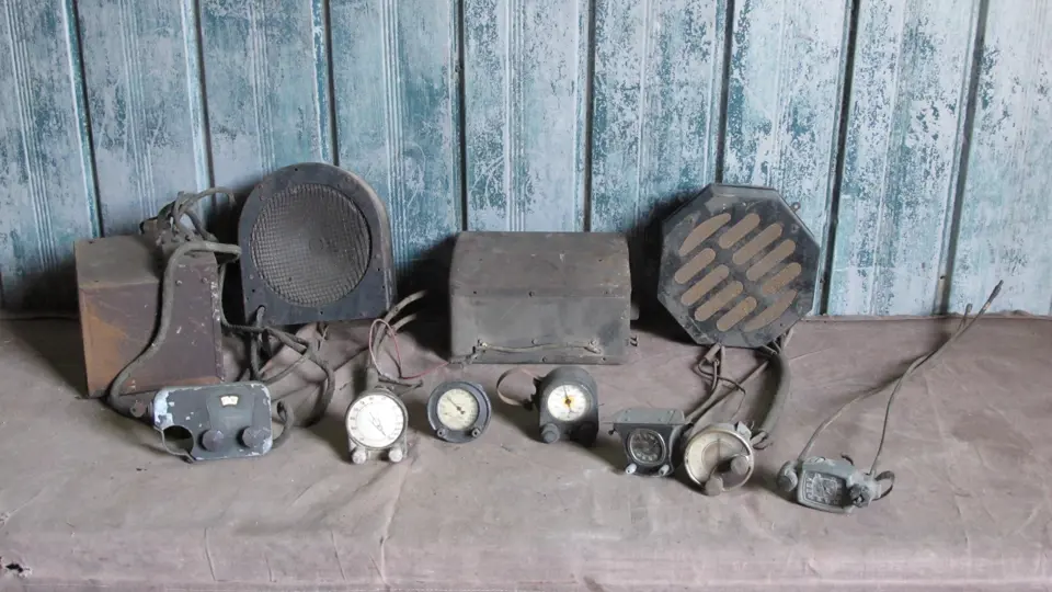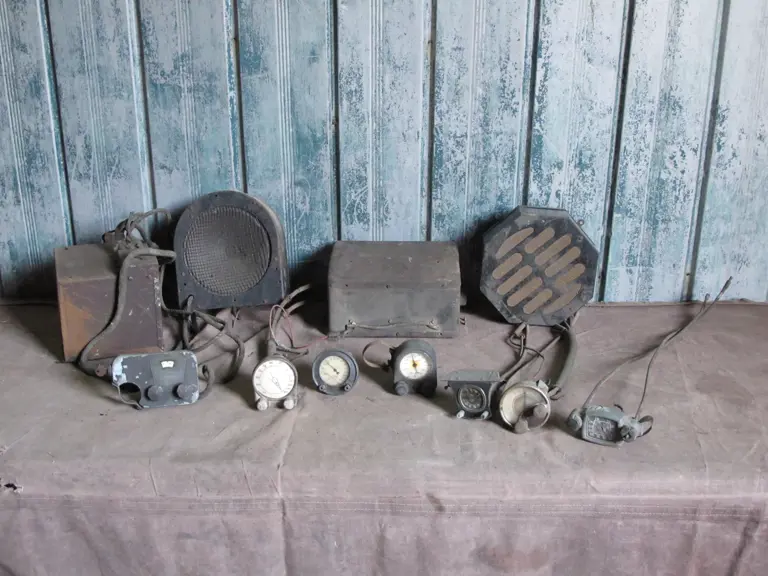 Antique car radios including a circa 1930-31 Motorola, 1937 Ford and several radio control heads.