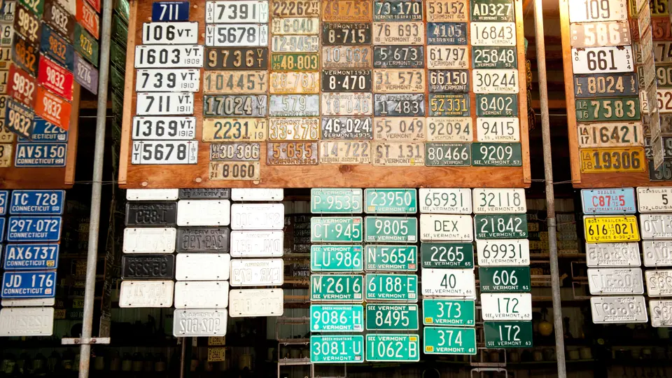 Lot includes a very comprehensive collection of license plates from "The Green Mountain State" including an early run from 1909.