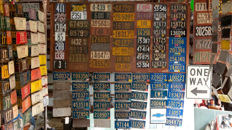 Lot includes a very complete collection of "The First State" Delaware license plates including several very rare and desirable porcelain pre-war examples.