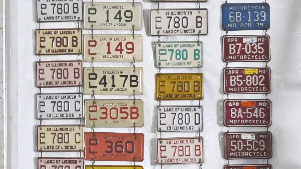 Lot includes a large grouping of motorcycle dealer and passenger plates from Illinois and other states with some numerical duplicates.