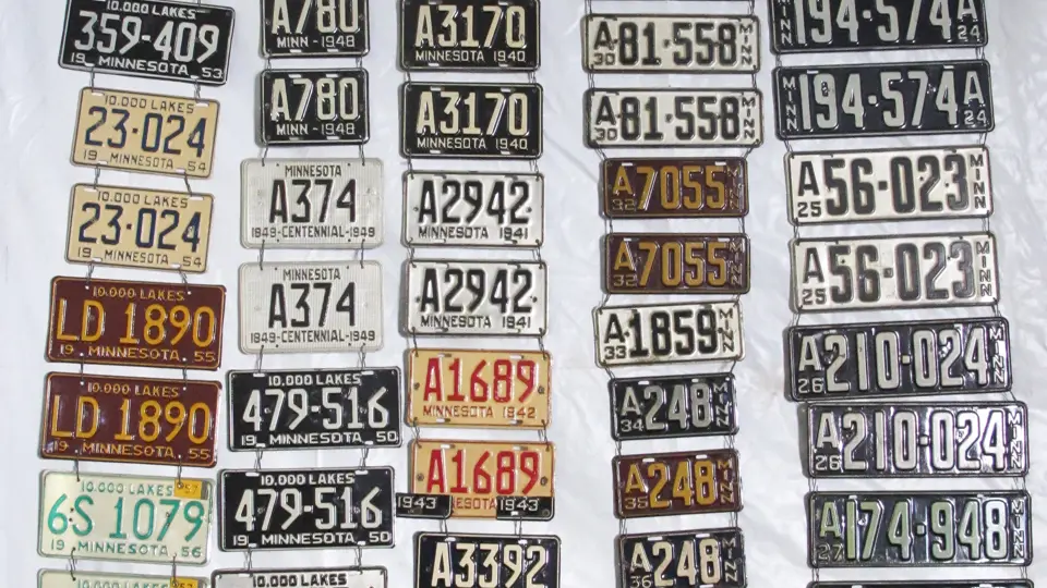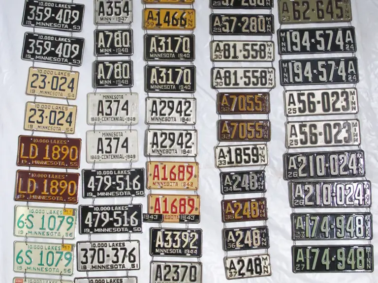 Minnesota license plate sequential run from 1922 to 1965, almost all of which are matched pairs. Approximately 45 plates are in the lot.