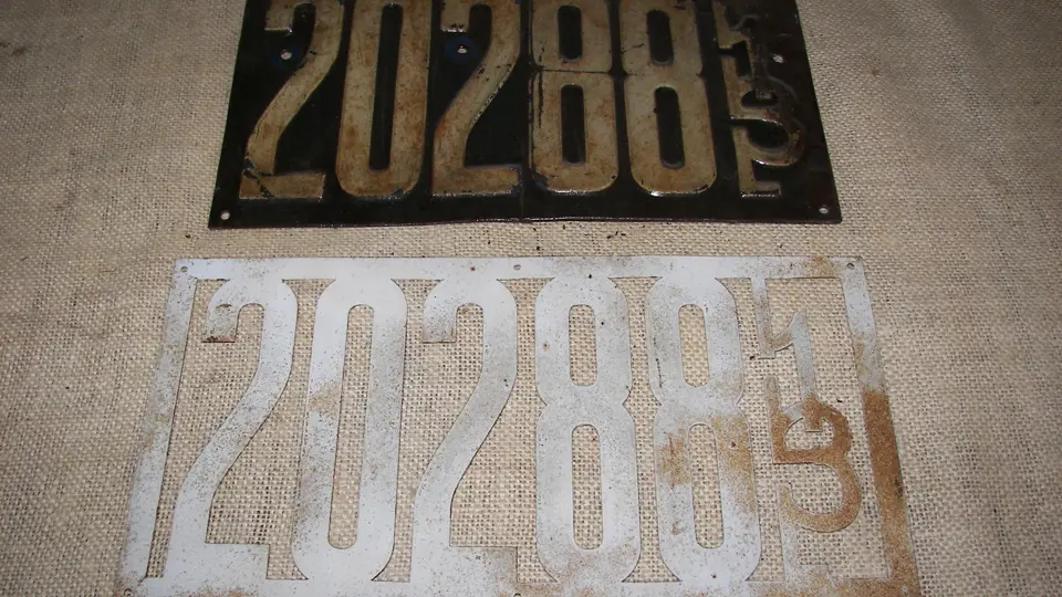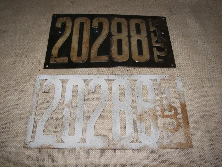 Pair of Illinois license plates, front and back, from 1913 and numbered '20288'.