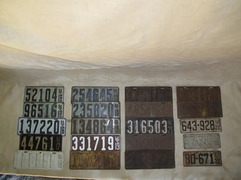 Sequentially dated Illinois license plates from 1922 through 1916 with several examples of each year included and in varying condition. Approximately 22 plates are included in the lot, most are six digit examples.