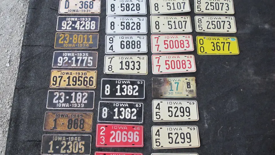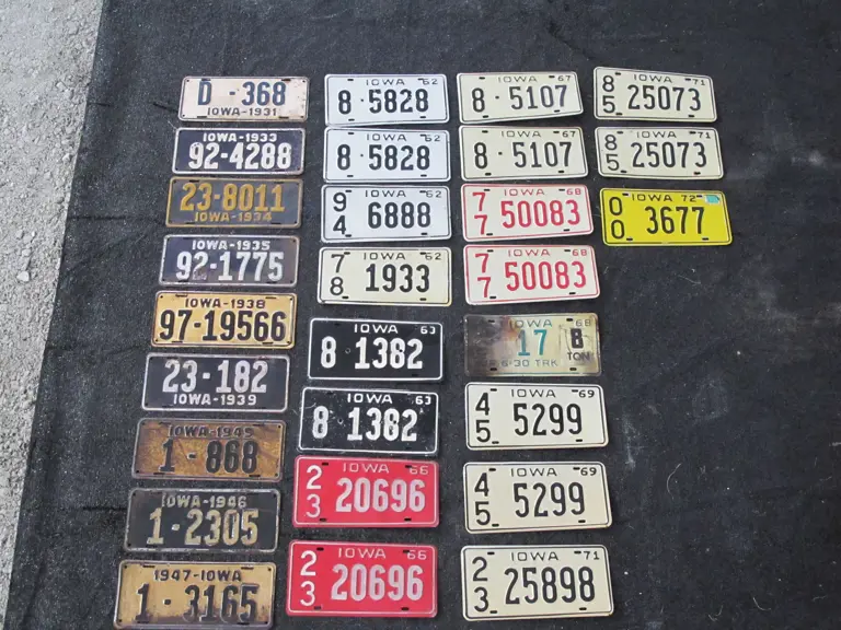 Approximately 25 license plates from Iowa including a three digit 1931 example.