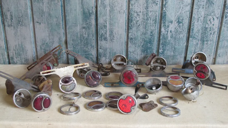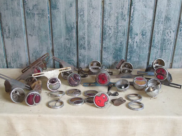 Model A Ford tail lights and tail light lenses.