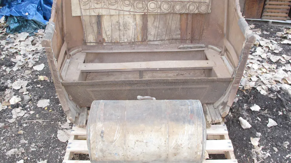 Rear body section from a teens Ford Model T touring car and a gasoline tank off of an early roadster or speedster.