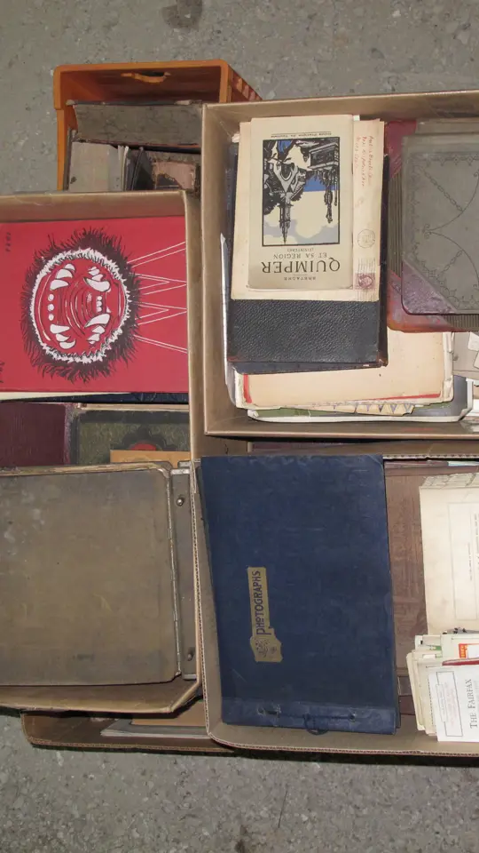 Unsorted books, pictorials, scrap books, photo albums, maps, and other documents and materials all related to the late 19th and early 20th century.