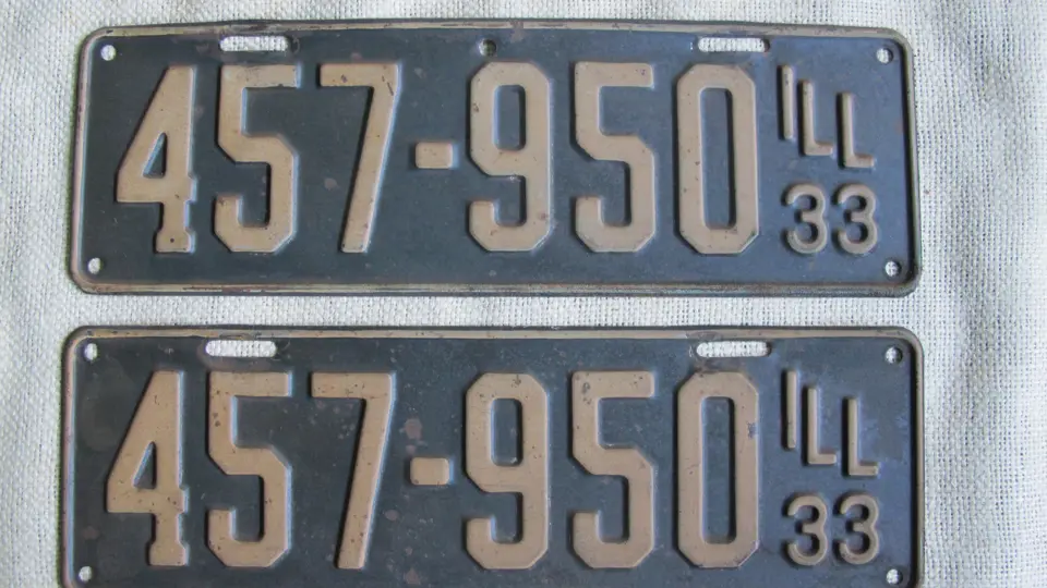 Lot includes a pair of 1933 Illinois plates. Number 457-950