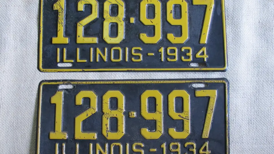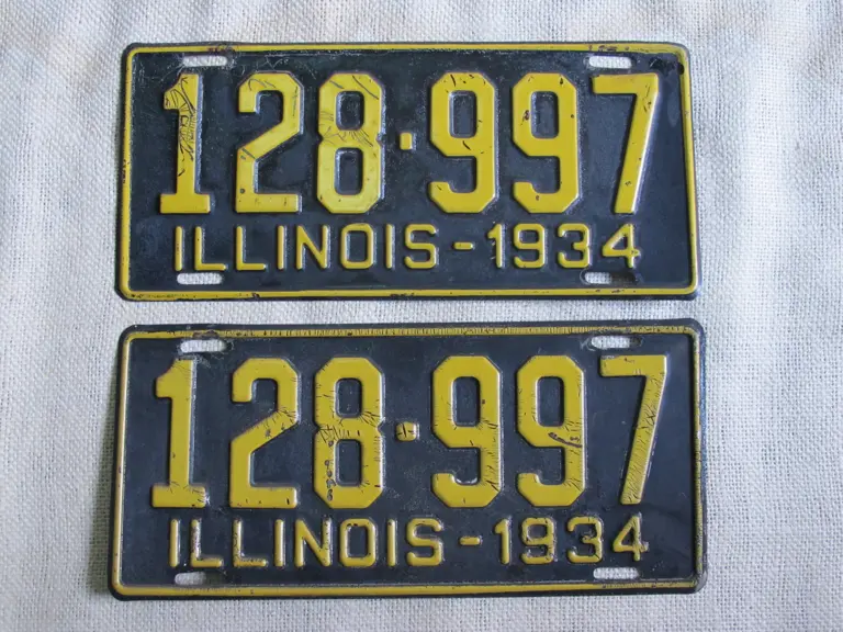 Lot includes a pair of 1934 Illinois plates. Number 128- 997