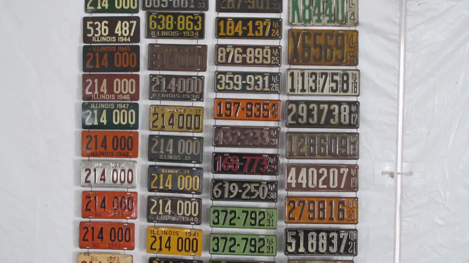 Lot includes approximately 35 pre-war 6-digit Illinois license plates dating from 1914 to 1943 with numerous matched pairs.