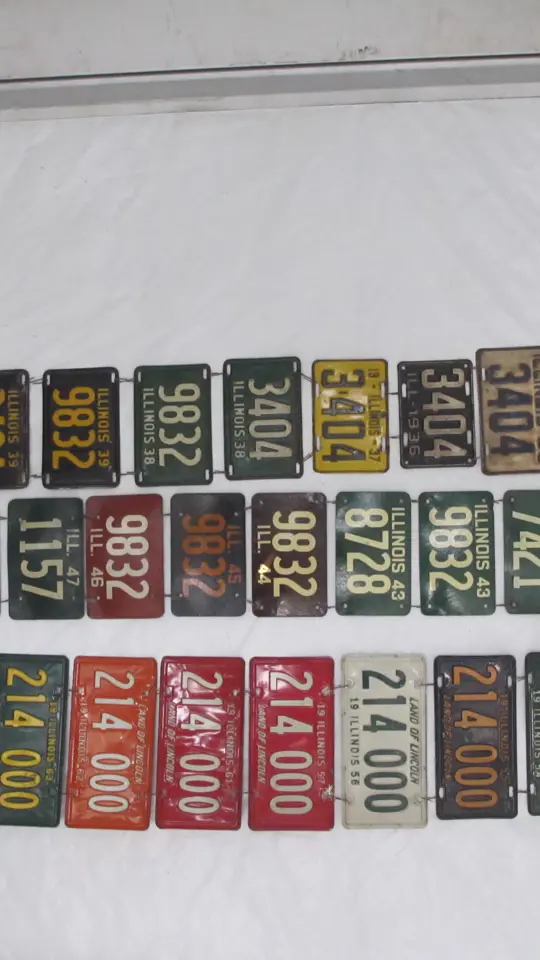 Lot includes approximately 35 Illinois 4-digit and 6-digit license plates dating from 1931 to 1963, with many matched pairs and several years missing.
