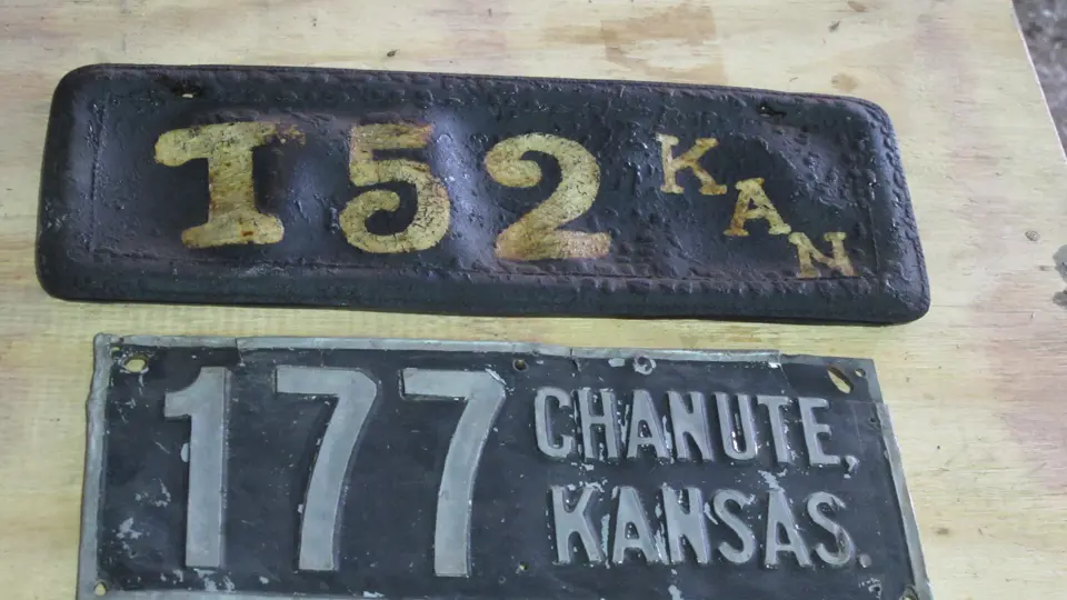 Lot includes a rare leather pre-state Kansas plate numbered "T52" as well as a 3-digit pre-war Chanute, Kansas plate numbered "177".