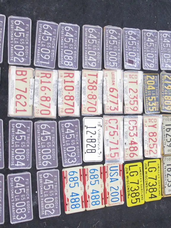 Lot includes approximately 30 license plates from assorted states, including Louisiana, Minnesota, and Illinois, all of which are still packaged in their original mailing envelopes.