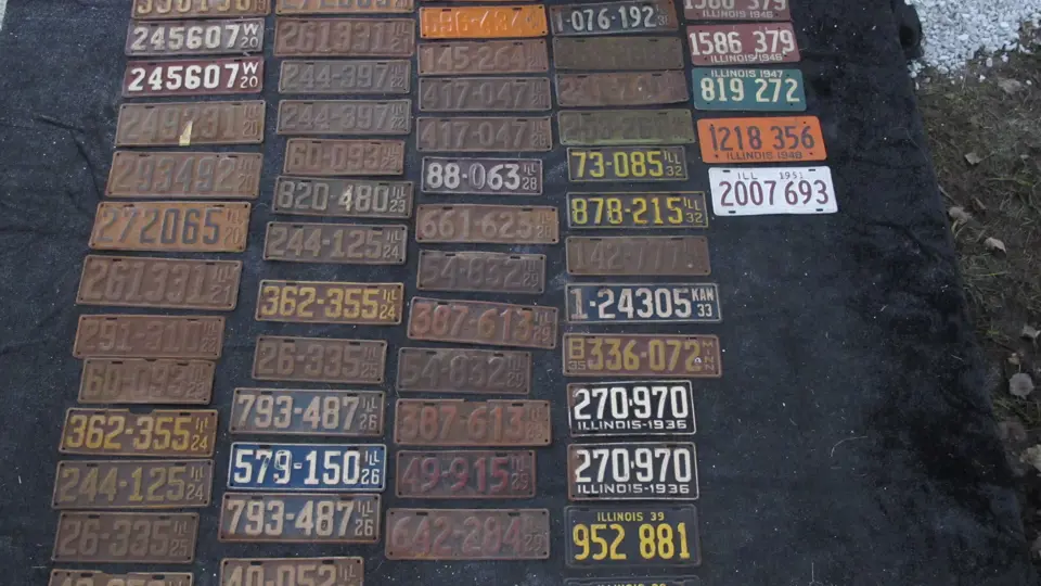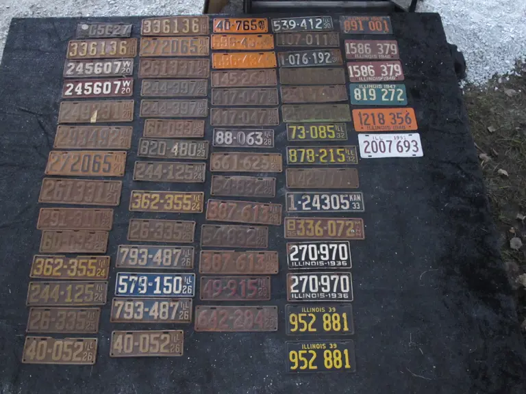 Lot includes approximately 50 Illinois license plates dating from 1922 to 1940 with several matched pairs.
