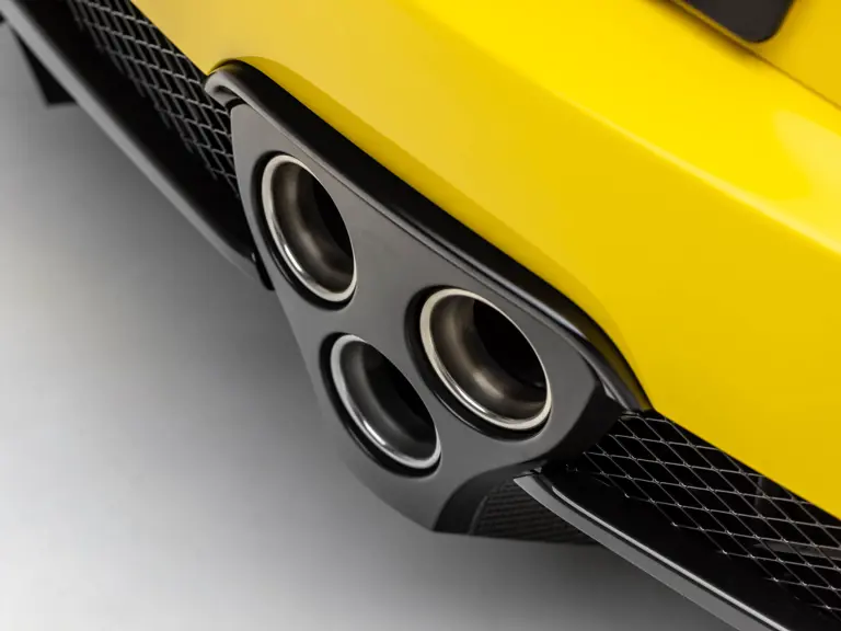 A lightning-quick, six-speed, automated, sequential, manual transmission controls the magnificent V-10. Operated by paddle shifters, the so-called ASG intelligent transmission can upshift in just two-tenths of a second and gives the driver precise control under even the most extreme driving conditions. Unrivaled among modern supercars, the LFA’s exhaust note was developed in conjunction with Yamaha’s music division and has been described by Lexus engineers as “the roar of an angel.”