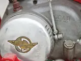 The 125 Sport is the quintessential early Ducati single, and it is the perfect machine for vintage events anywhere, including the Motogiro d’Italia. With a 70+ mph top speed, the 10-horsepower SOHC engine is fast and reliable, and the overhead-camshaft engine can easily rev to 8,500 rpm. It is also extremely light at 221 pounds, and its two-tone red and white paintwork with a distinctive scalloped fuel tank is particularly elegant. Along with signature clip-on handlebars, the 125 Sport had good brakes and handling. This example is nicely restored with good paint and chrome.