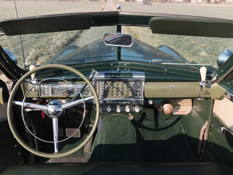 The Town and Country Convertible was built on the upscale New Yorker chassis, yet it offered a wide variety of luxurious appointments in addition to the New Yorker’s many standard features. With a starting price of $3,420, the Town and Country Convertible was the most expensive Chrysler model available. The car offered here is equipped with the standard eight-cylinder in-line engine and features the solid White Ash wooden frame with mahogany veneer insert panels.