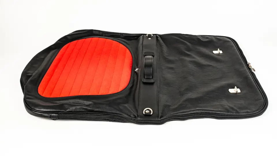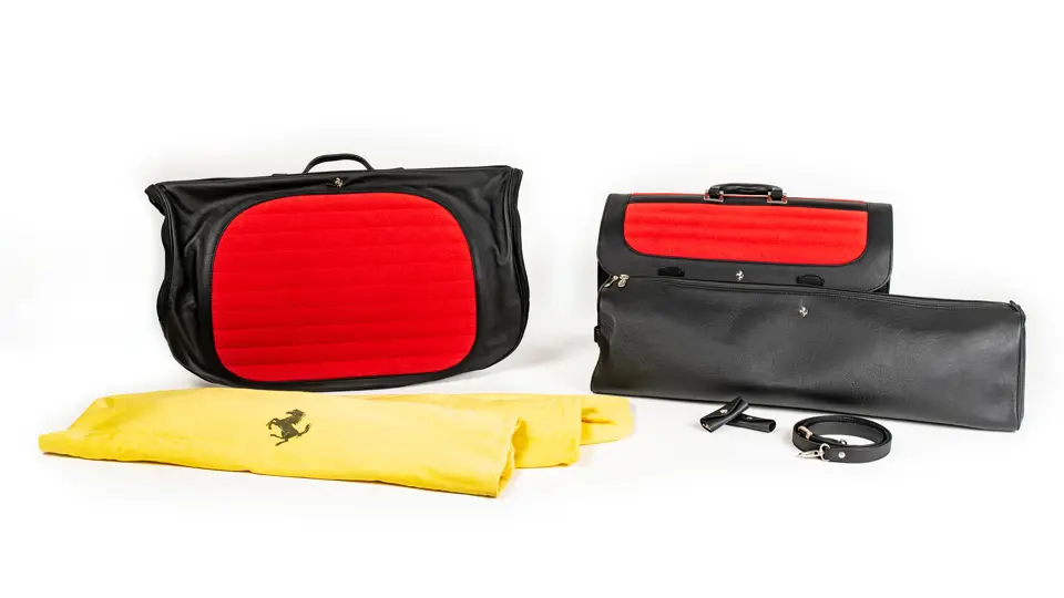 Includes briefcase bag, carry-on straps, leather shoe bag, and suit carrier.