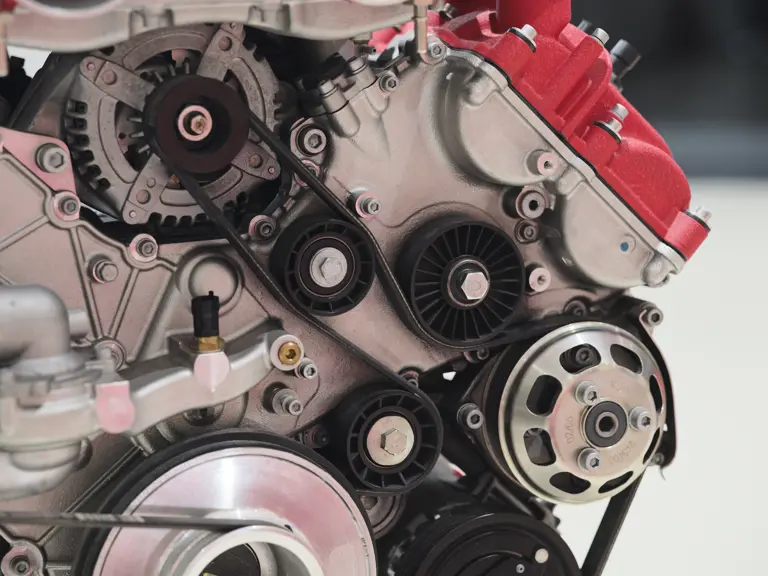 Making its debut in October 2008 at the Paris Motor Show, the Ferrari California was based on an all-new convertible platform by Ferrari. Powered by a 4.3-litre V-8 engine that produced 453 horsepower, the California could reach 100 km/h in just four seconds. This engine was removed from a Ferrari California and mounted on a display stand as a piece of automotive artwork. It presents an enticing opportunity to any Ferrari enthusiast.