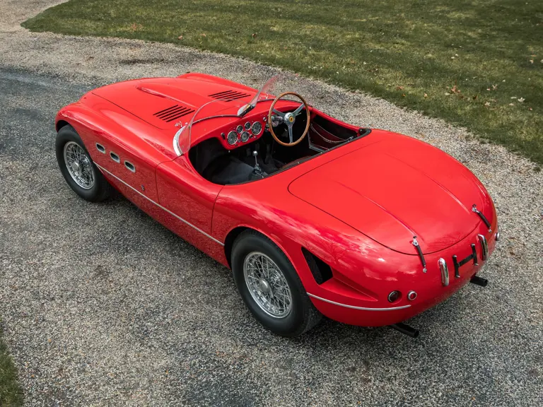 Chassis number 0350 AM is currently fitted with what is believed to be the original engine block from chassis 0032MT, a very important 1950 Scuderia Ferrari Works sports racer, and is notably accompanied by its original Lampredi V-12 long-block engine, the same motor that captured Sterling Edwards four victories in eight racing appearances from 1953 to 1954. This striking and iconic example of Maranello’s pivotal 1953 championship-winning model offers a rare opportunity for Ferrari collectors to acquire a 300-horsepower Ferrari V-12 Spider for a fraction of the price of its later siblings such as the 375 Plus, 290 MM, 410 Sport and 335 Sport. Being the sister car to the 1953 Mille Miglia winner, 0350 AM is in the same rarified breed as legendary cars such as the 300 SLR. As one of the most successful early Ferraris to campaign in SCCA events, the highly desirable spider is undoubtedly the car that first introduced many American enthusiasts to the brilliance of Aurelio Lampredi’s legendary racing engine. 0350AM’s historical significance, combined with the fact that it is one of only a very few select Ferrari examples that is eligible to all of the most important vintage racing and rally events in the world, make it a crowning addition to any collection, ideal for both display and further touring enjoyment.