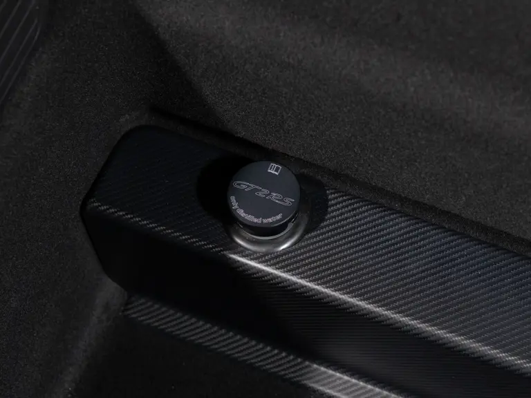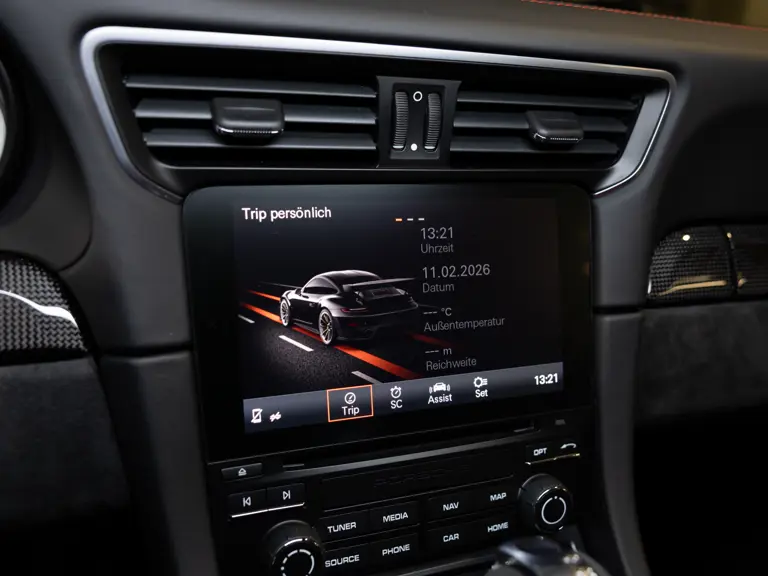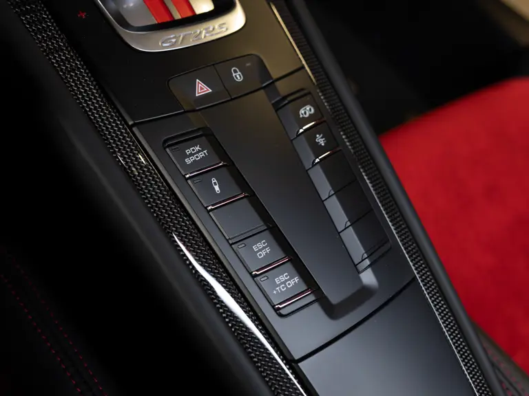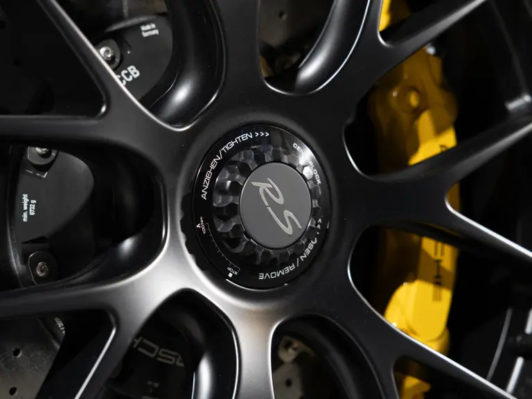 Technical highlights of this Rennsport tour de force include the seven-speed dual-clutch transmission, ceramic composite brakes, an extended range fuel tank, Porsche Active Suspension Management, rear-axle steering, and a torque-vectoring system. As part of a generous configuration, the Porsche also benefits from a rearview camera, cruise control, a Bose surround sound system, and a front-axle lifter.