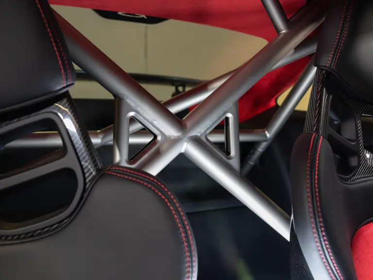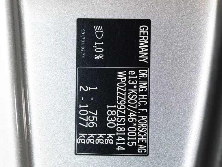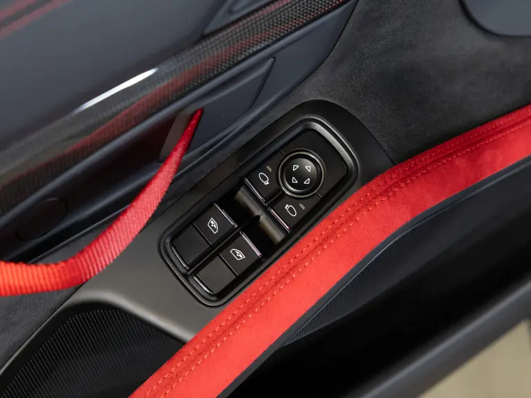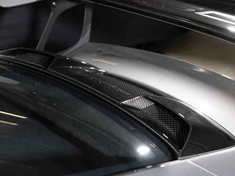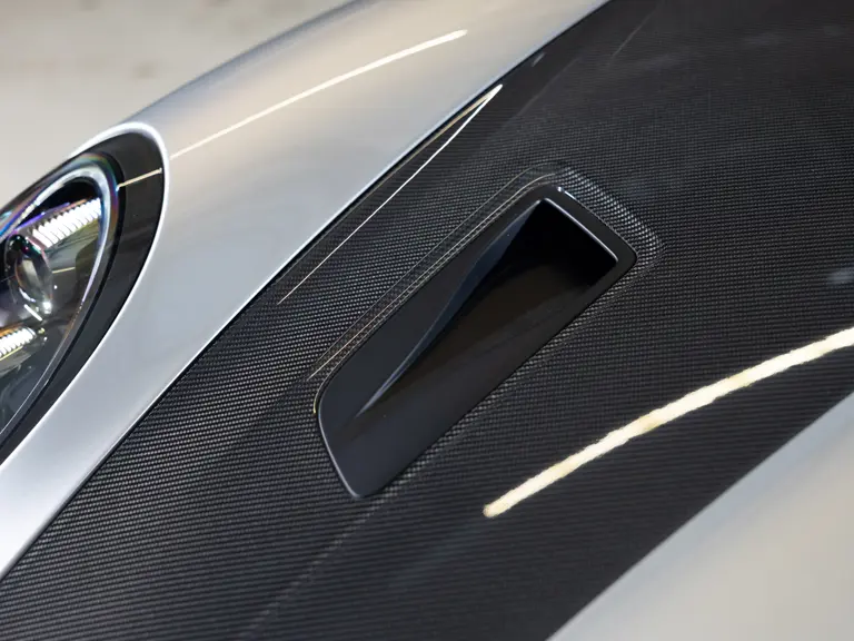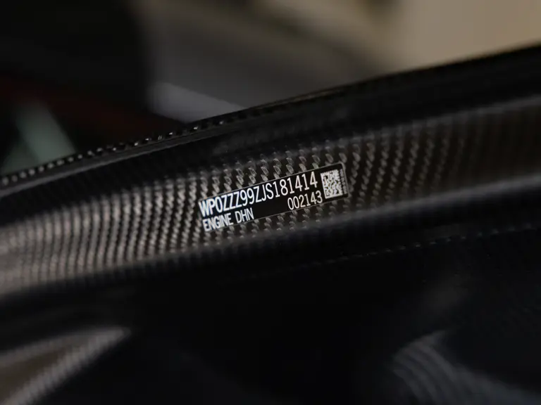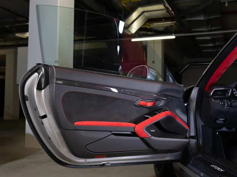 Delivered to Switzerland on 14 November 2018 via Porsche Zentrum Zürich, this car is finished in GT Silver Metallic. Notably equipped with the “Weissach” package, it wears Satin Black forged magnesium centre-lock wheels that combine with a carbon fibre roof, anti-roll bars, and coupling rods to save 30 kilograms. The interior, meanwhile, blends Guards Red and Black leather and Alcantara for the Porsche 918 Spyder-specification bucket seats. Further enhancing the cabin, this car was configured with the optional extended leather trim package for the dashboard and centre tunnel, plus white instruments dials and a white-faced Sport Chrono stopwatch.