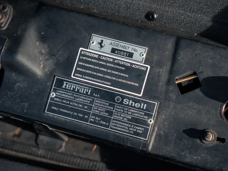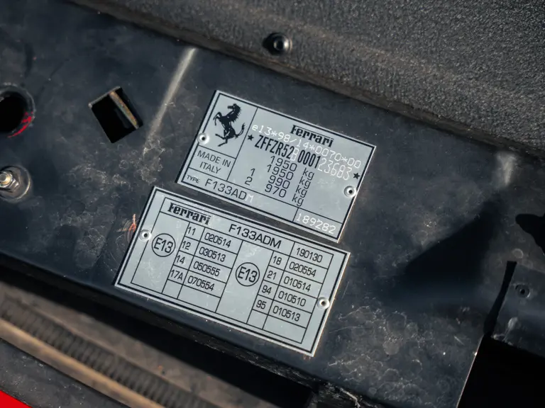 The example offered here is numbered “011” from the 550 Barchetta Pininfarina’s build allocation of only 448 cars. Original documents on file note the car was supplied by the Milan-based Ferrari dealer Rossocorsa, with the order taken on 21 December 2000. The Ferrari was specified with Rosso Corsa paint over an interior with Nero carpets and leather upholstery. It was marked as complete by the Maranello factory in April 2001. Remarkably, the car has remained with its sole owner, also of Milan, since first delivery.