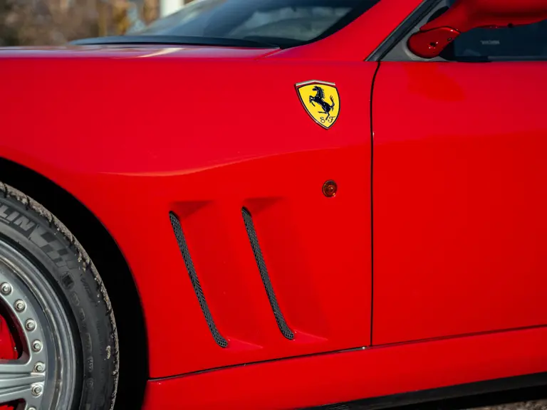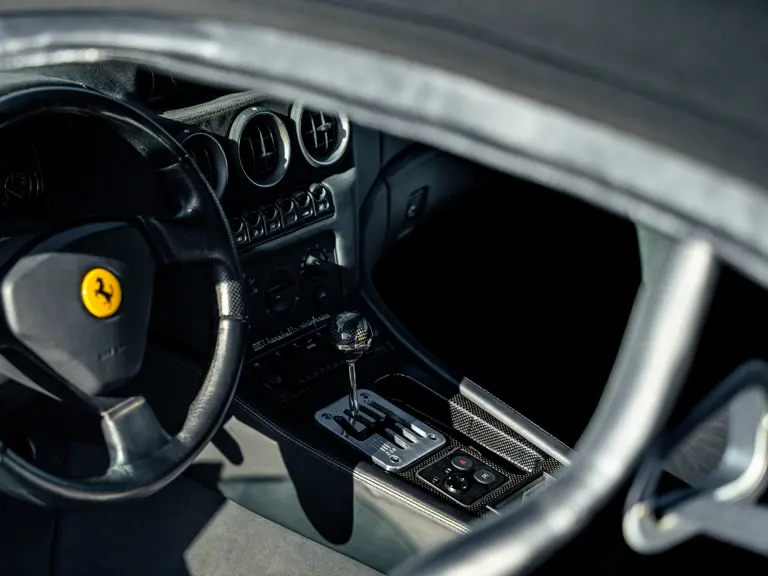 Looking to reinvigorate its 12-cylinder offerings and give a nod to its illustrious past, Ferrari introduced the 550 Maranello to great acclaim in 1996. The factory had been without a two-seat, front-engined V-12 coupé since the Daytona, and the 550 Maranello was lauded as a wonderful, if not overdue, successor to that iconic model. With grand touring once again a popular activity of Ferrari clientele, the 550 Maranello’s spectacular performance, spacious trunk, and rear parcel shelf that could carry enough luggage for two on a weekend road trip fit the bill perfectly.