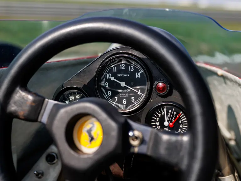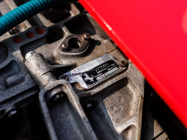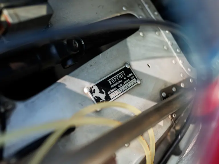 Chassis 036 was subsequently submitted to Ferrari Classiche for inspection, with certification duly awarded in January 2025. In addition to listing the car’s race history, the accompanying “Red Book” records that the car retained its original chassis and bodywork. It was recognised for being fitted with a correct-type flat-12 engine (numbered 97) and five-speed manual transmission (numbered 11).