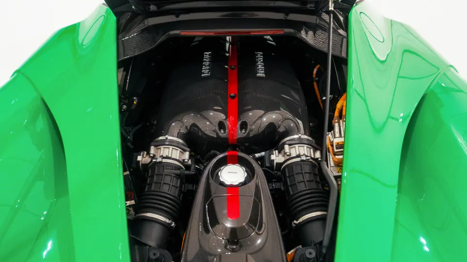 Prior to the LaFerrari leaving British shores, Ferrari dealer Jardine Colchester completed a service, high-voltage battery replacement, and the fitment of four new tyres with a workshop bill totalling £99,978. In February 2026, the hybrid battery system was tested again, this time by the dealer Emil Frey. The high-voltage system was noted at 71 per cent state of charge, with the low-voltage system at 97 per cent. While with the Emil Frey workshop, the LaFerrari was subject to its most recent annual service, and at that point its odometer read only 11,154 kilometres. Later in the year, the LaFerrari returned for exhibition at the Ferrari museum. The LaFerrari is accompanied by a history file replete with its many main dealer service entries charted on the Genuine Maintenance Program register.