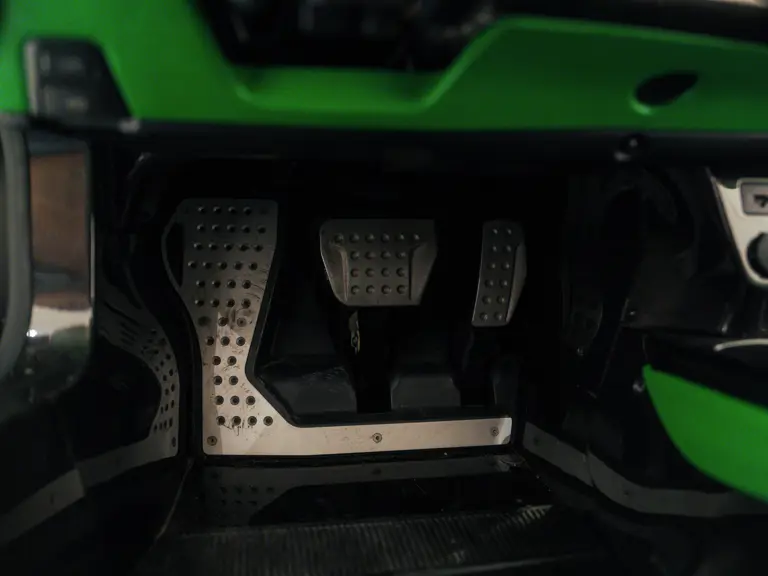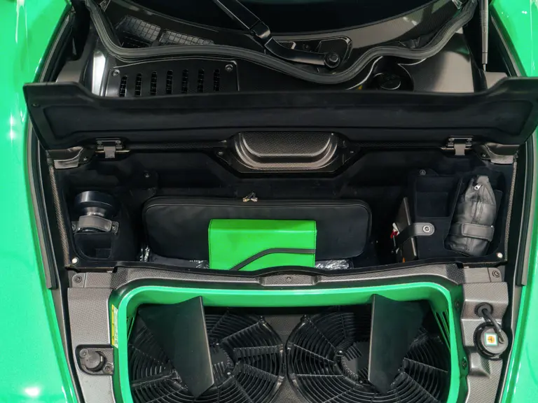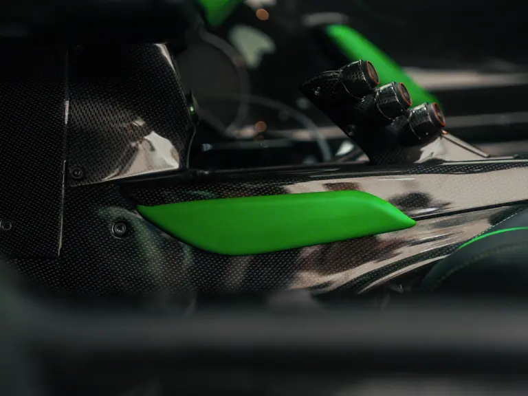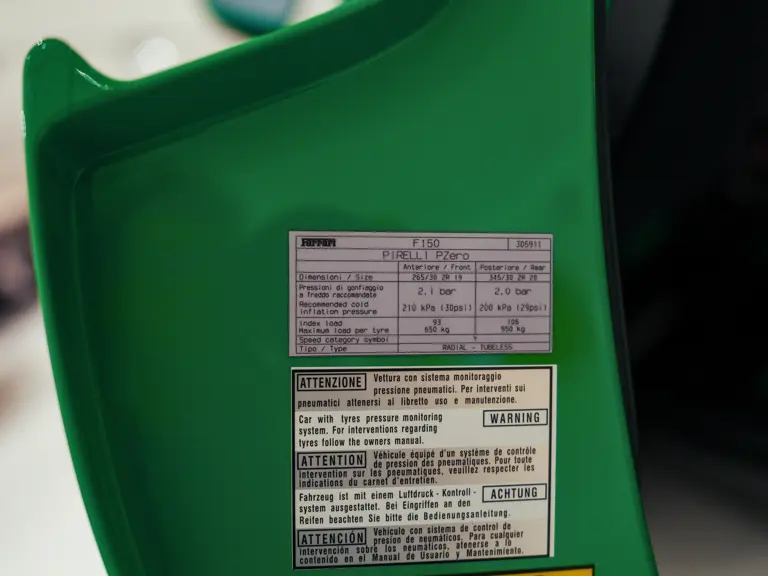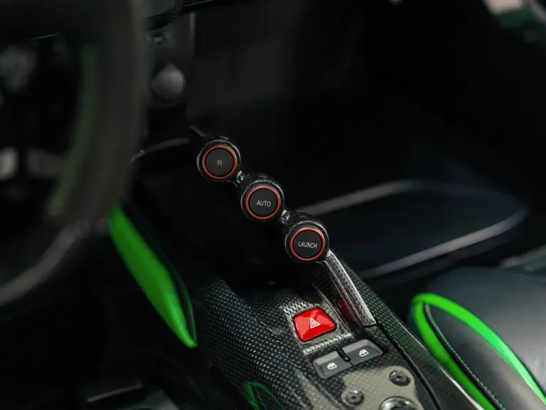 The LaFerrari was configured in its distinctive shade of green by Jay Kay, the frontman of Jamiroquai and a noted car collector. The musician placed the order through Dick Lovett Sporting Ltd, the prominent Ferrari dealer based in Swindon, England, with its handover date of 24 June 2014 coinciding with the day it was registered for the road in the United Kingdom. To complement the unique Signal Green exterior, the LaFerrari was finished with a roof finished in exposed carbon fibre—believed to be one of only 50 to take this option—and a generous application of the lightweight material around its sculpted body. The brake callipers were painted in Giallo Modena to complete a colourful side-profile, while the five-spoke alloy wheels were a product of Ferrari’s Tailor Made ultra-exclusive list of options.