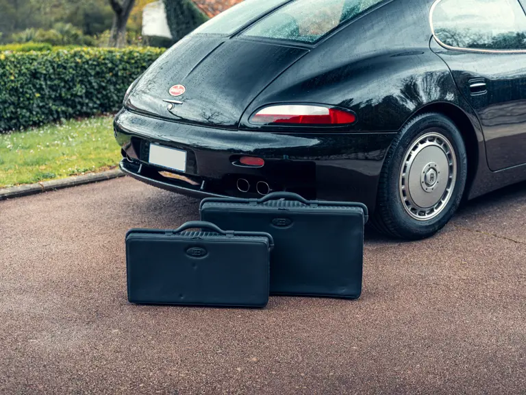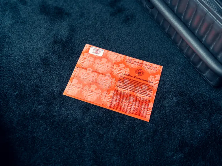 As offered today, the EB112 is still very much as it was when completed by Pastor. It has remained registered in Monaco and is offered by only its second owner from new, with the odometer displaying a mere 388 kilometres at time of cataloguing. The consignor enlisted specialist shop Garage des Moneghetti to service the Bugatti, with work conducted in 2021 and 2022 including repair of the car’s braking and suspension systems, an overhaul of its emissions control system, including replacement catalytic converters, as well as attention to the car’s cosmetic condition and fitment of new Michelin tyres. Further engine work was completed by Lorrtec Race Engines in May 2022. In total, service invoices on file reflect over €37,000 invested in the EB112 under current ownership. The car is now accompanied by two pieces of luggage, a tool roll, and, importantly, its special umbrella with the elephant mascot handle.