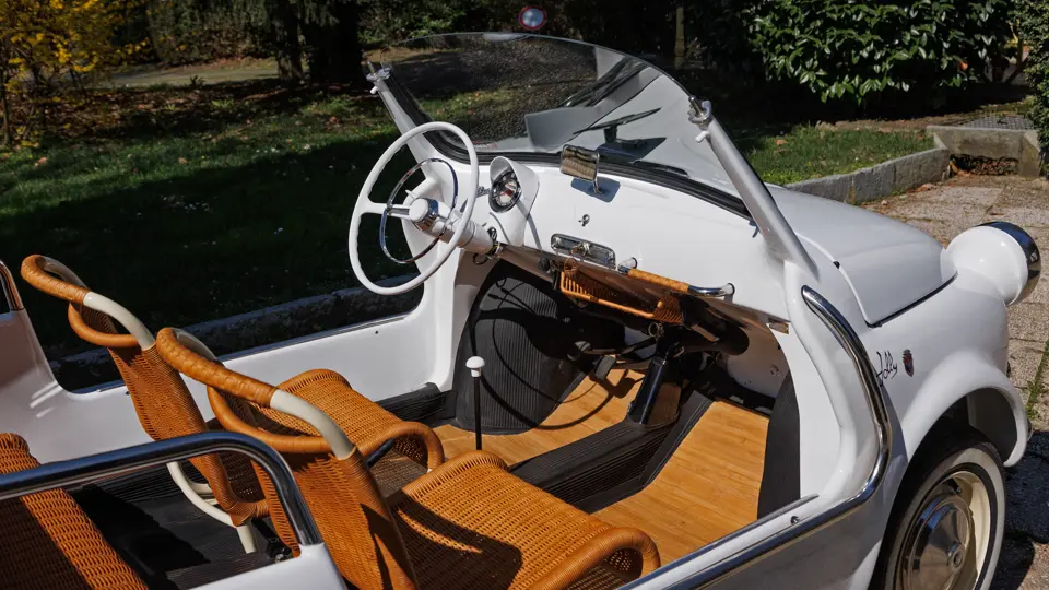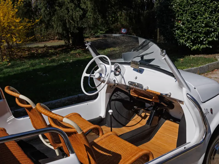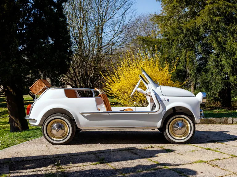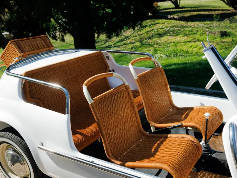 In its standard form, the Fiat 500 was conceived as an affordable solution to navigate crowded and narrow Italian streets. Compact and simple in its design, the Fiat mobilised entire cities and was the unsung hero of post-war Italy. The Fiat 500 Jolly was a light-hearted take on the hard-working city car. It was envisioned in 1957 by coachbuilder Ghia, who was commissioned by Fiat boss Gianni Agnelli to create a car for stretches of spiaggina around the Mediterranean coastline. It is rumoured that Agnelli wanted a car that was small enough to fit on his yacht, Agneta.