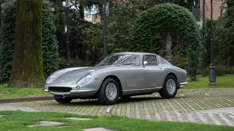 A history on file by marque expert Marcel Massini indicates that the 275 GTB was specified for the European market with instruments in kilometres and finished in the elegant colour combination of Argento Metallizzato paint over an interior swathed in Nero leather by Connolly. Completing assembly in August 1966, the berlinetta was sold through official dealer Dino Ravasio & Sons of Verona, Italy to Ermanno Arabbi, an enthusiast residing in Vicenza.