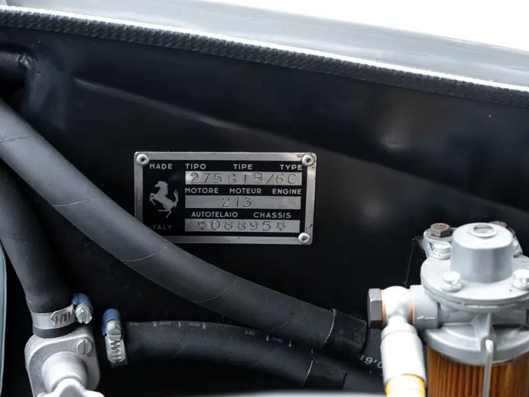 As a Classiche-certified, six-carburettor 275 GTB that retains its matching-numbers engine, and being correctly finished in the original shade of Argento Metallizzato, chassis 08895 is surely one of the most desirable long-nose 275 examples one might hope to encounter. Additionally offered with a tool roll and owner’s manual, this striking high-performance berlinetta is poised for a triumphant re-entry to the Ferrari niche, ideal for presentation at regional concours d’elegance and club gatherings, or exhilarating drives on engaging thoroughfares.