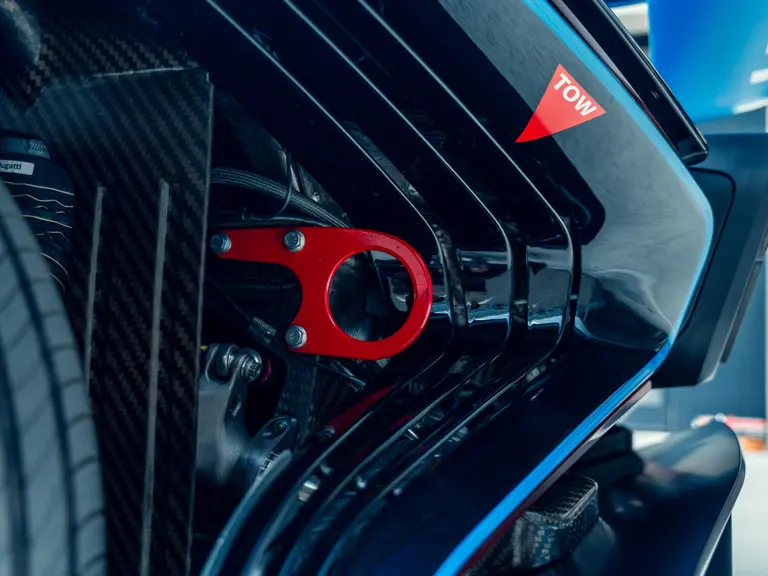 To rein in the speed, Bugatti worked with Brembo to create massive carbon fibre-reinforced carbon brakes with eight pistons at the front, six at the rear, and specially formulated pads. A new pushrod suspension setup coupled with the extreme aerodynamic package delivers the driving dynamics of a top-tier LMP1 sports racing car.
