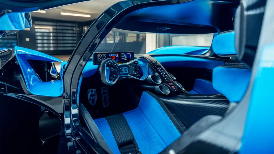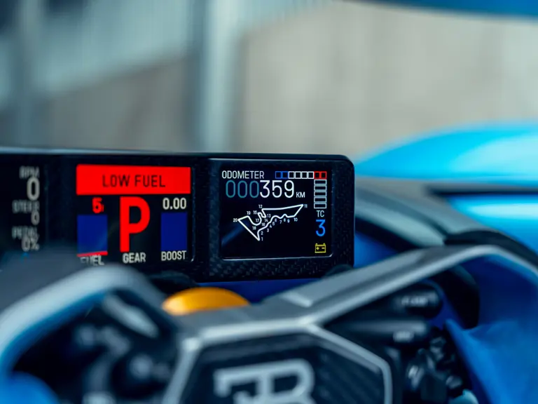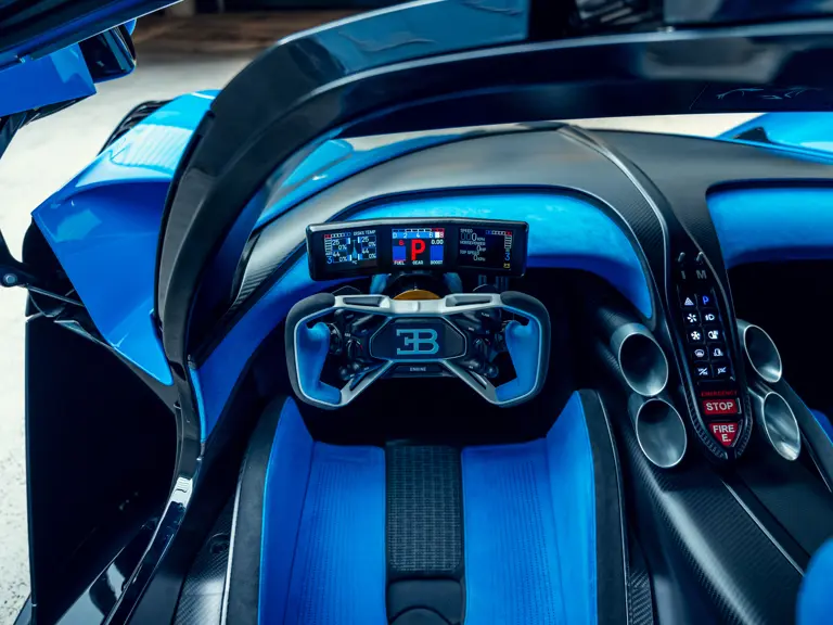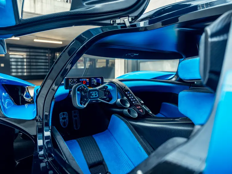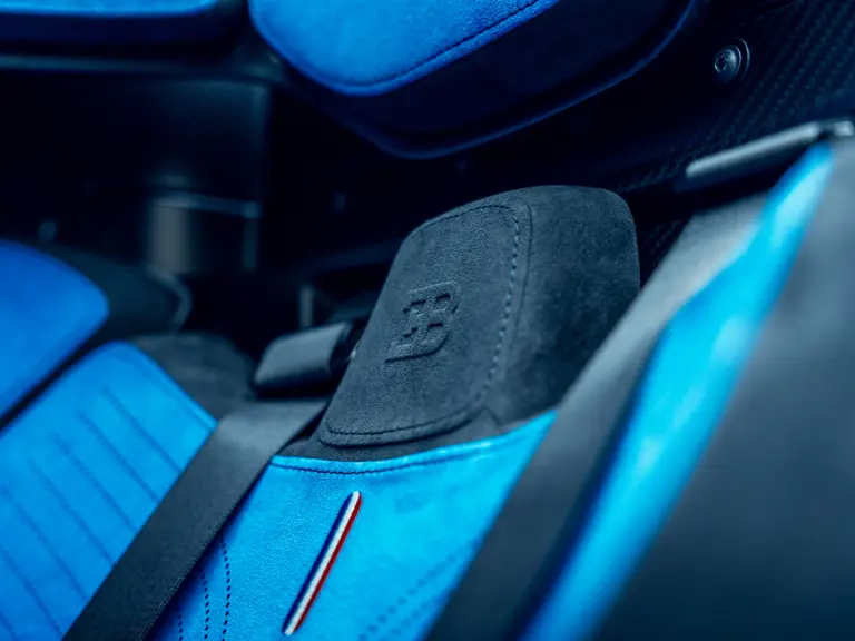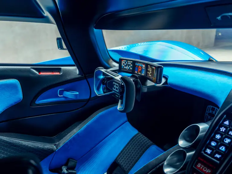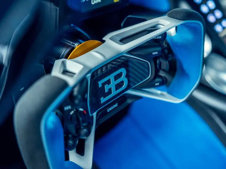 The interior shares nothing in common with the Chiron. Every element was built from scratch, including the optimised racing seats layered directly onto the monocoque and the high-tech steering wheel designed with input from Bugatti test drivers, who stipulated the compact, ergonomic form with eight key buttons optimally placed for ease of use at breathtaking speeds and G-force loads.