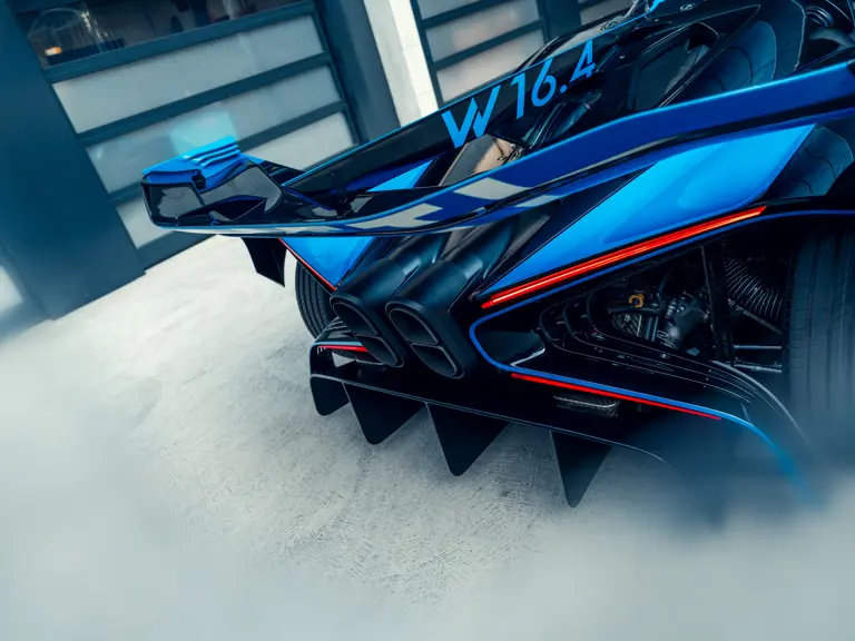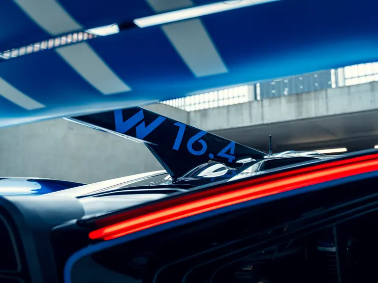 The company developed an entirely new carbon fibre monocoque optimised for track use that positioned the familiar W-16 engine 60 millimetres further forward than in the roadgoing Chiron. Made of the highest quality carbon fibre composites usually reserved for Formula 1 and top-level endurance race cars, the chassis is built to FIA Le Mans Hypercar safety standards. Meanwhile, minimal carbon fibre bodywork generates around twice the car’s own weight in downforce at maximum speed.