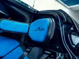 The interior is trimmed in French Racing Blue and Beluga Black Alcantara (€20,000) with Beluga Black stitching. The steering wheel also features Alcantara (€10,000), as do the seats (€20,000), which feature an outer logo in aluminium (€20,000). Interior trim is in polished aluminium with an in inner signature line in Granite (€10,000), while the door sills are black carbon fibre (€5,000) with the Bolide logo in Agile Blue.