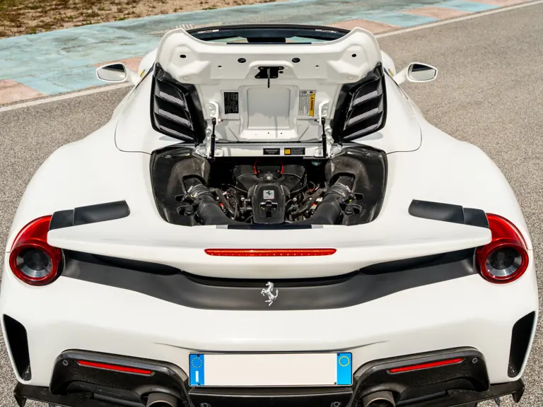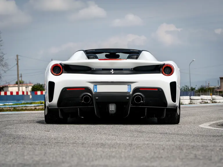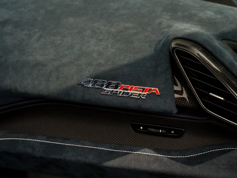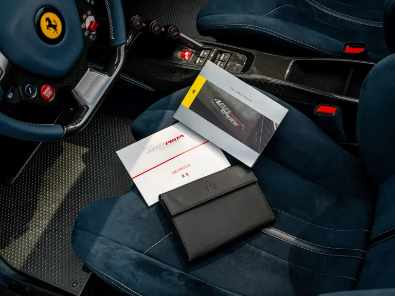Further desirable add-ons include electrochromic interior and exterior mirrors, adaptive front headlights, titanium exhaust pipes, a navigation system with Bluetooth, front and rear parking sensors, a front suspension lifter, upgraded Hi-Fi system, and brake callipers finished in Silverstone Grey. The 488 Pista Spider has been used sparingly by its sole custodian and, as a result, its odometer displays just 2,478 kilometres at the time of cataloguing.