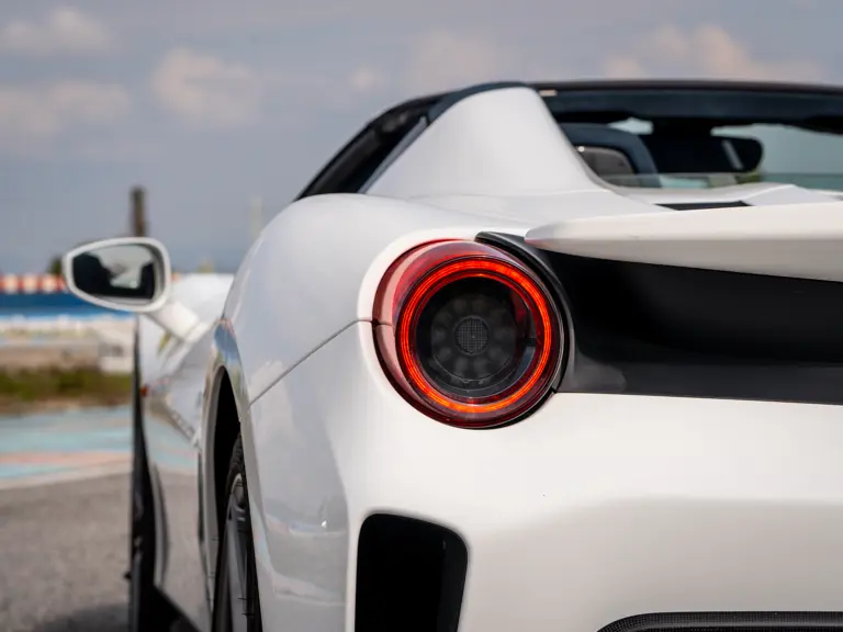 Performance is jaw-dropping, with a 0-100 km/h sprint of just 2.85 seconds and a 340 km/h stated top speed. But Ferrari’s engineers also prioritised balance and handling; Pista, after all, is Italian for “track”, which signifies the car’s motorsport-derived purity of purpose. Formula 1-inspired aerodynamic enhancements and carbon fibre composite construction are found across the car, and the 488 Pista models were the first to receive the Ferrari Dynamic Enhancer—a tech suite that improves handling on the limit by automatically modulating the car’s carbon ceramic brakes for greater control and predictability. It is also worth noting that, with a manufacturer-stated kerb weight of 1,485 kilograms, this hardtop convertible is over 90 kilograms lighter than the 488 GTB coupé.