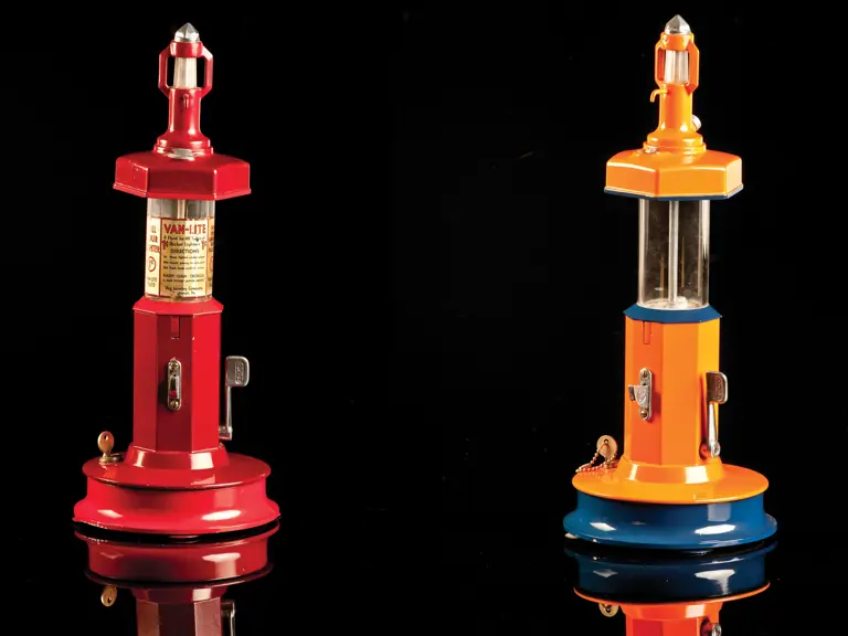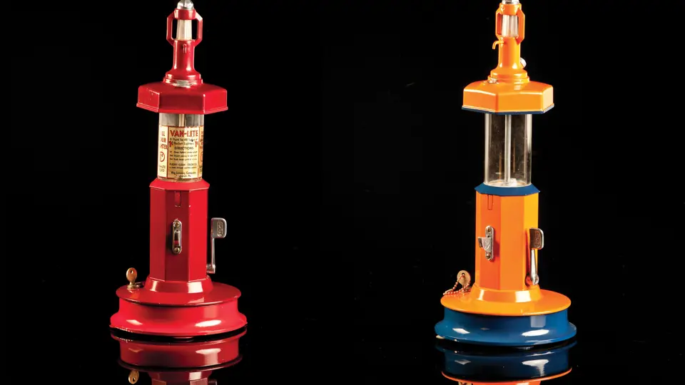 Built by the Van Lansing Company. Features one-cent operation. Red dispenser has original sticker still on the glass. Highly complete, with red dispenser in well-preserved condition, yellow dispenser in restored condition. 9x19 inches each
