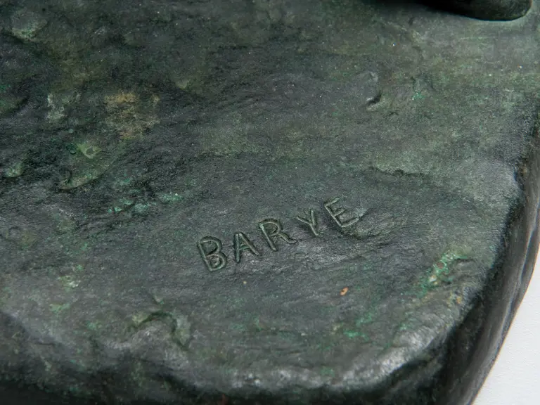 cf. Offered here is a striking original bronze by. Barye was considered one of the finest sculptors of his time, and his works adorn the streets and museums of Paris, where later in life he was even appointed Director of Drawings at the Louvre.