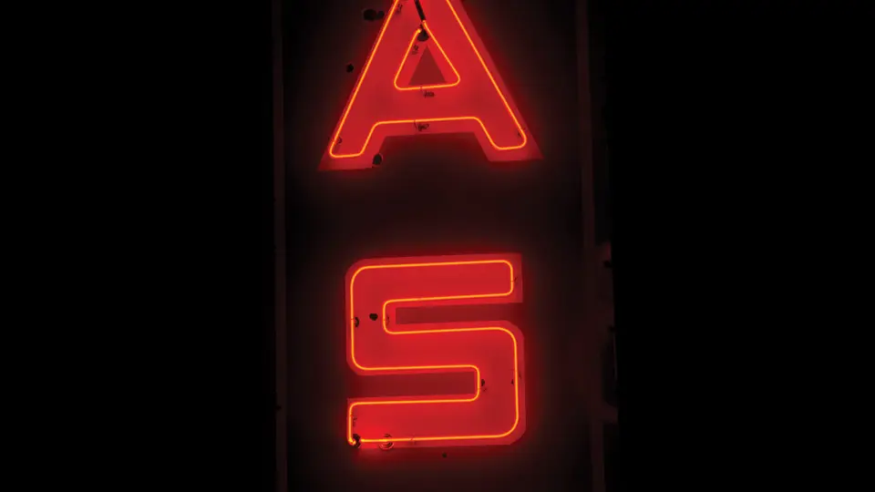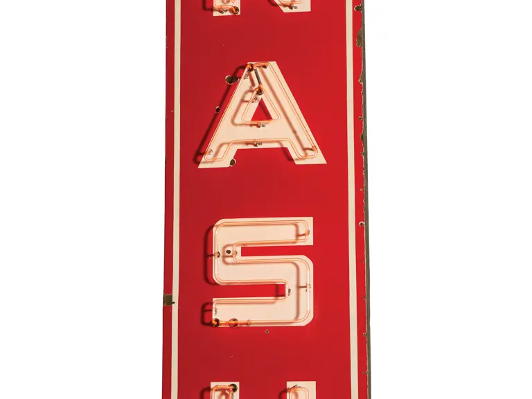 Neon. Noticeable chipping on outer edges and face of sign. 34x112x8 inches.