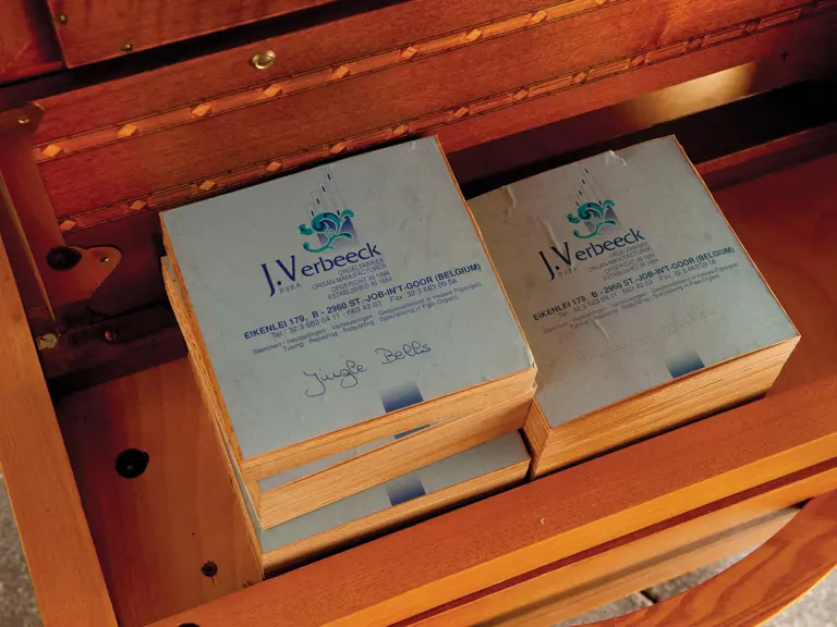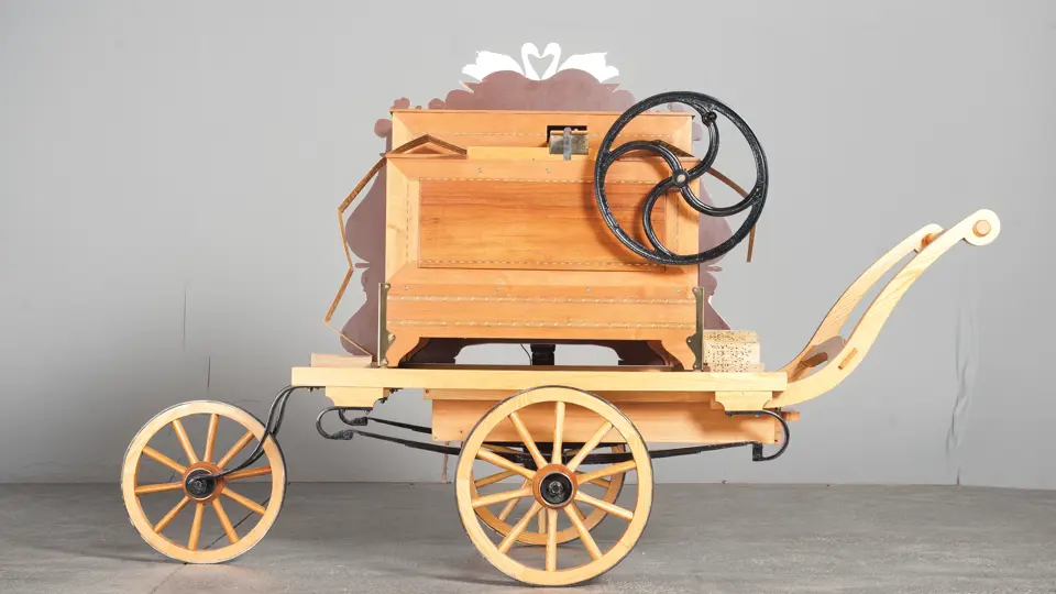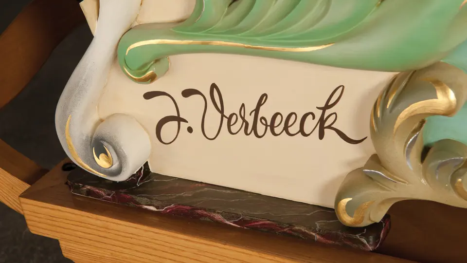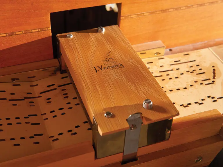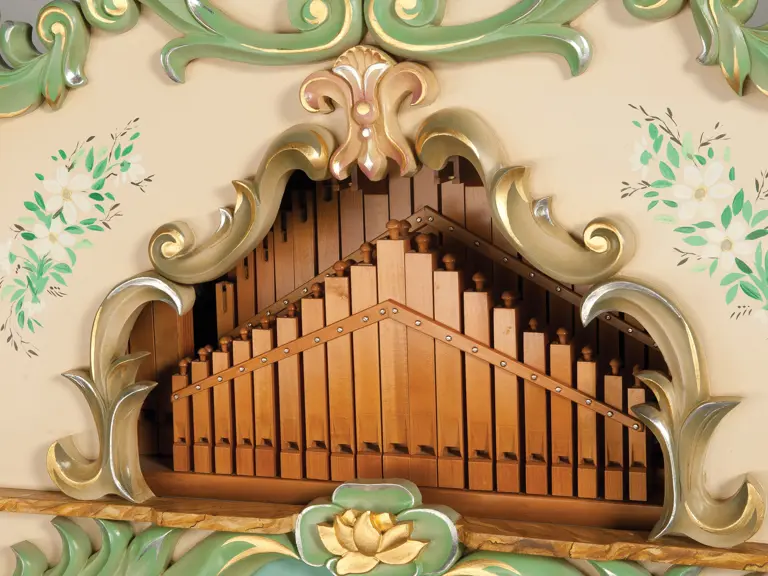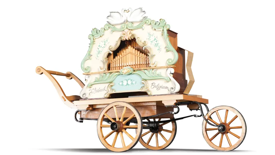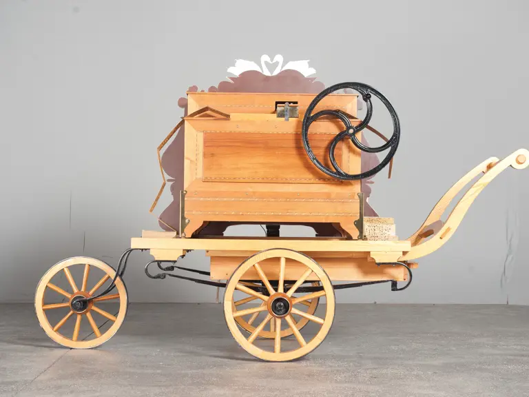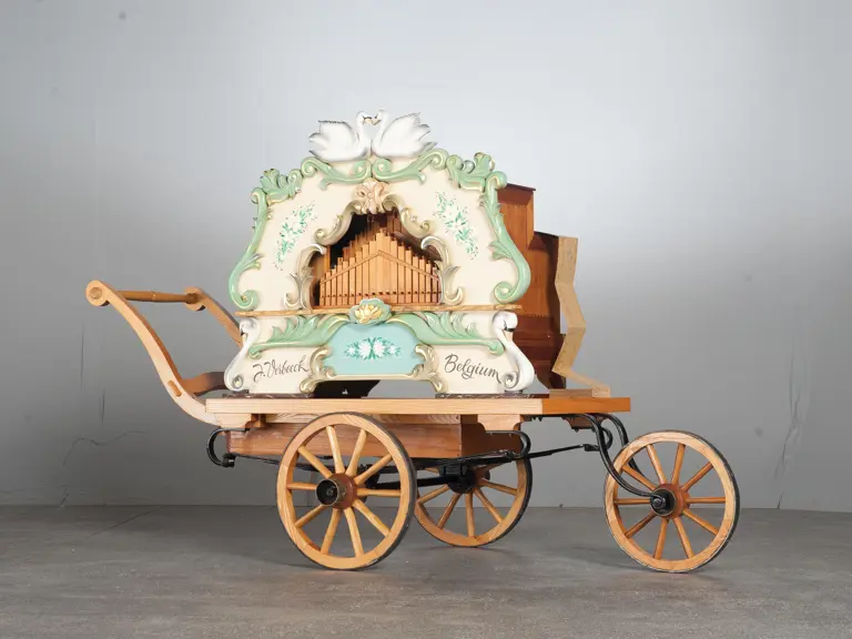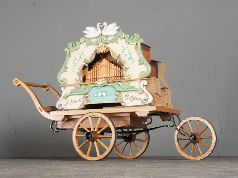 A contemporary piece in virtually new condition, this organ was built by world-famous mechanical music expert Johnny Verbeeck, with an excellent assortment of custom arranged book music. Included in this music are such whimsical examples as "The Looney Tunes." The cost new was over 20,000 USD. 100x63x29 inches.