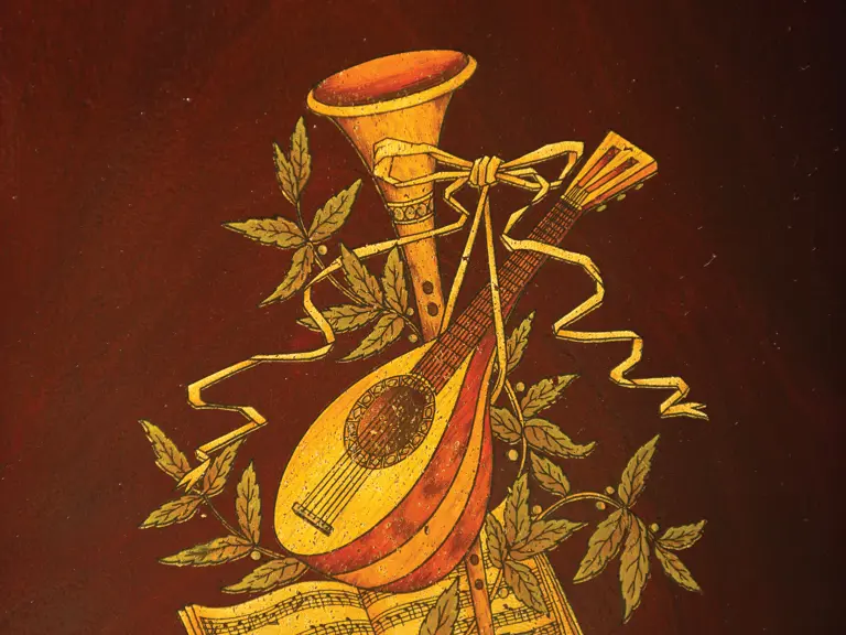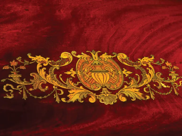 This handsome Miraphone was sold new in New York City by Jacot & Son, the music house located on Union Square. Advertised as "unequaled for sweetness, harmony and volume of tone," it has both a disc and horn, as noted, and is in a beautiful inlaid mahogany case with storage cabinet with two dozen discs. It remains in excellent original condition with correct, original decals. Here indeed is a showpiece of the highest order!
