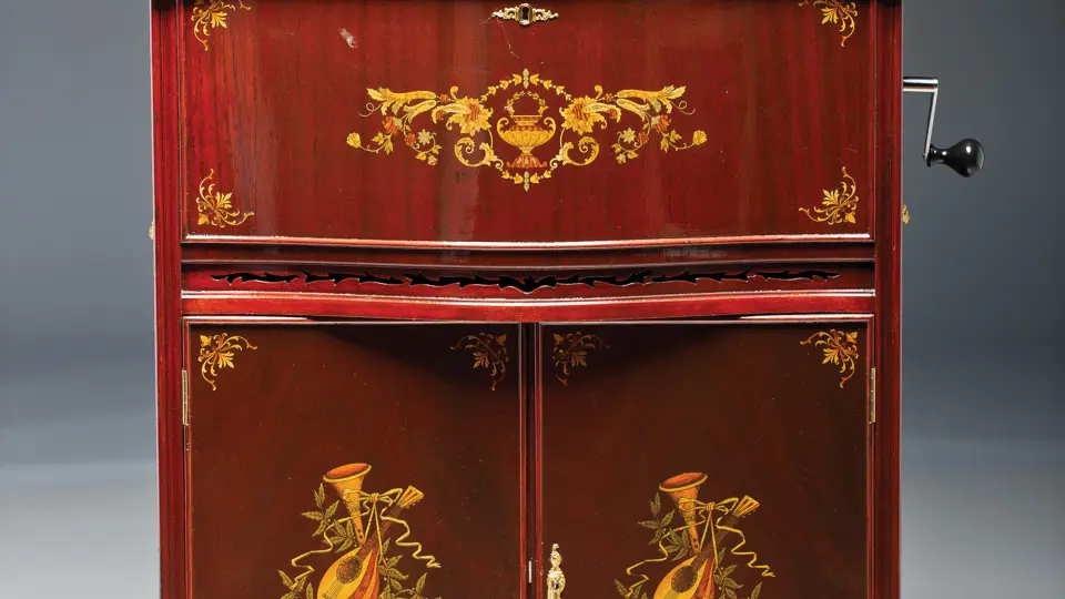 Reference: The Encyclopedia of Automatic Musical Instruments by Q. David Bowers (pg. 124 and 128). 32x61x32 inches.