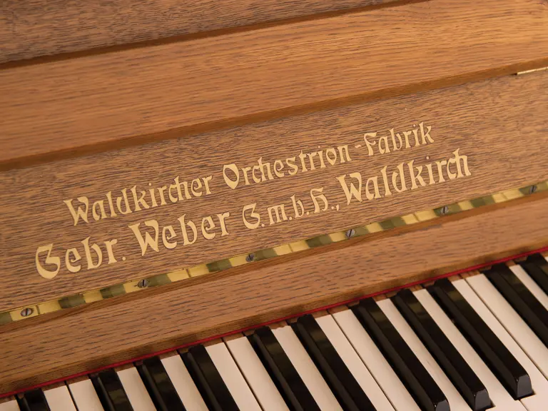 Gebr. Weber, or Weber Brothers, founded in Waldkirch in the Black Forest area of Germany in 1880, made instruments that are especially prized by collectors today. In the early 20th century the Waldkircher Orchestrionfabrik turned out a line of superbly crafted pianos and orchestrions that played with beautiful expression. In the early 1960s, when Q. David Bowers visited Waldkirch to do research, only a Styria orchestrion and Weber Otero remained in the town. At the time, these instruments were not well known to collectors and continue to be remarkably rare.